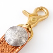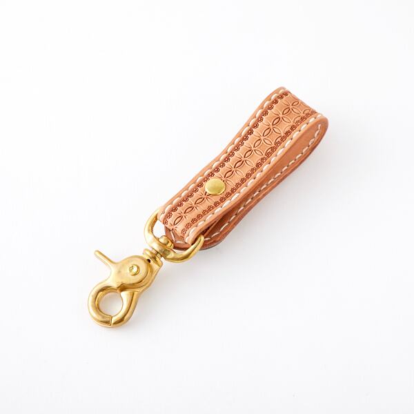 レザーベルトホルダーです。細かい刻印を打ち込みました。ベルトに付けて鍵を取り付けたり、ウォレットロープを取り付けできます。バッグにも取り付けして使えます。
