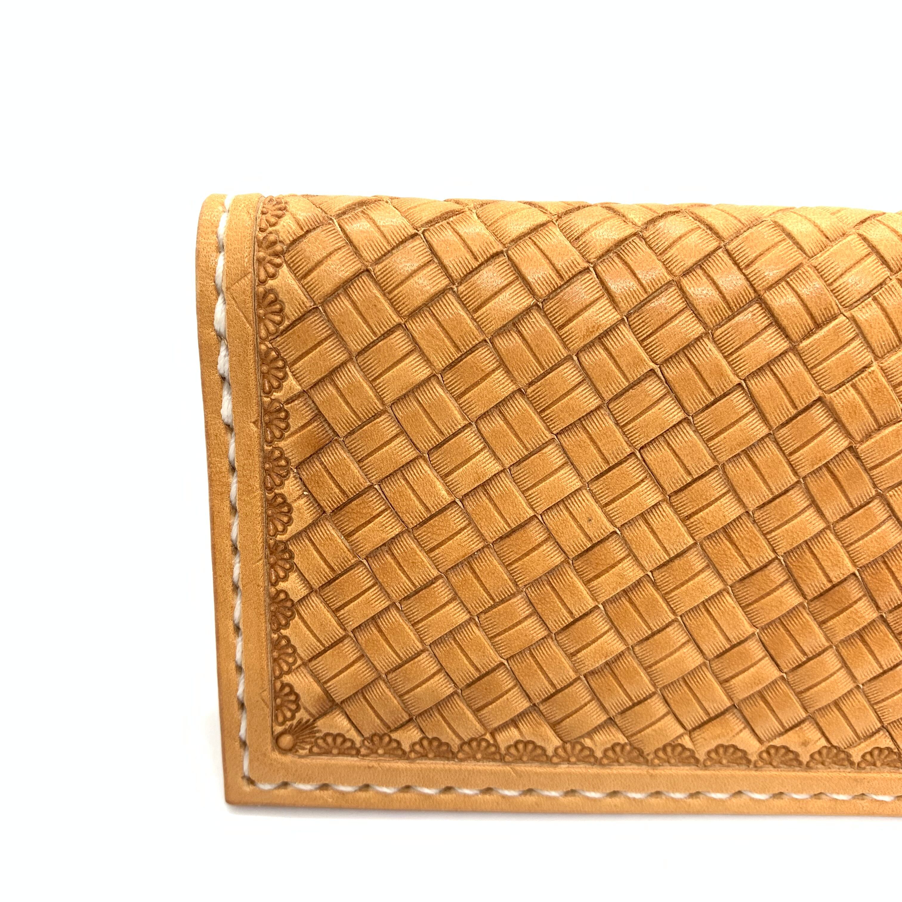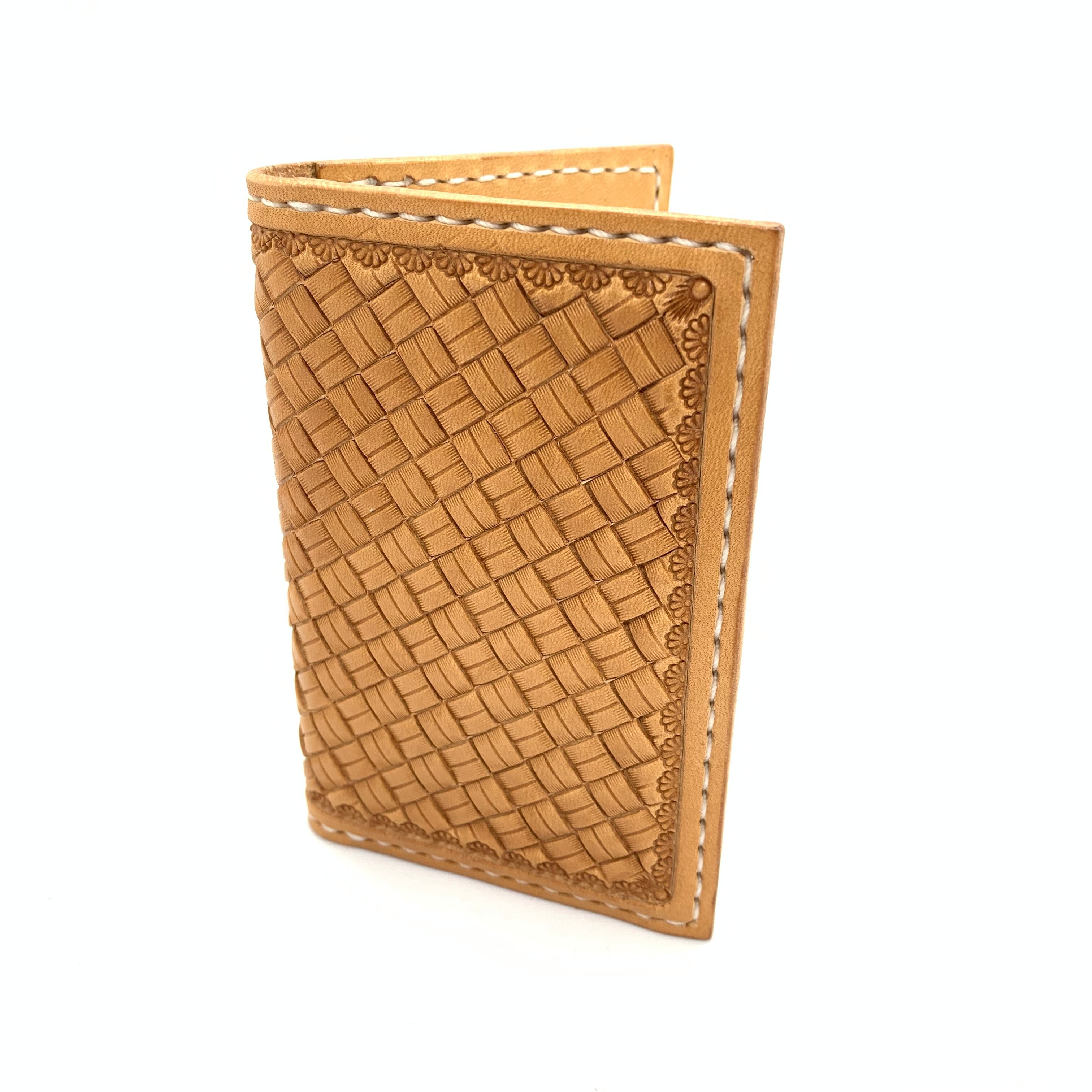 レザー名刺入れ・カードケースです。高級ヌメ革のハーマンオークレザーを使用しております。1点1点刻印にて模様を付けました。手縫いにて仕上げました。